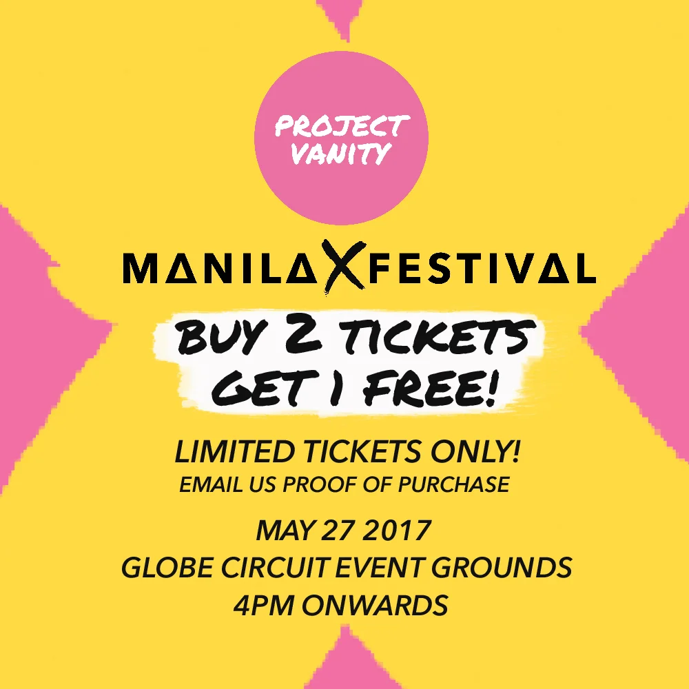 The Manila X Festival 2017 is set for May 27 at 7pm. Gates open at 4pm. Tickets are available from TicketWorld. General admission is P1,200 while VIP tickets are P2,000.