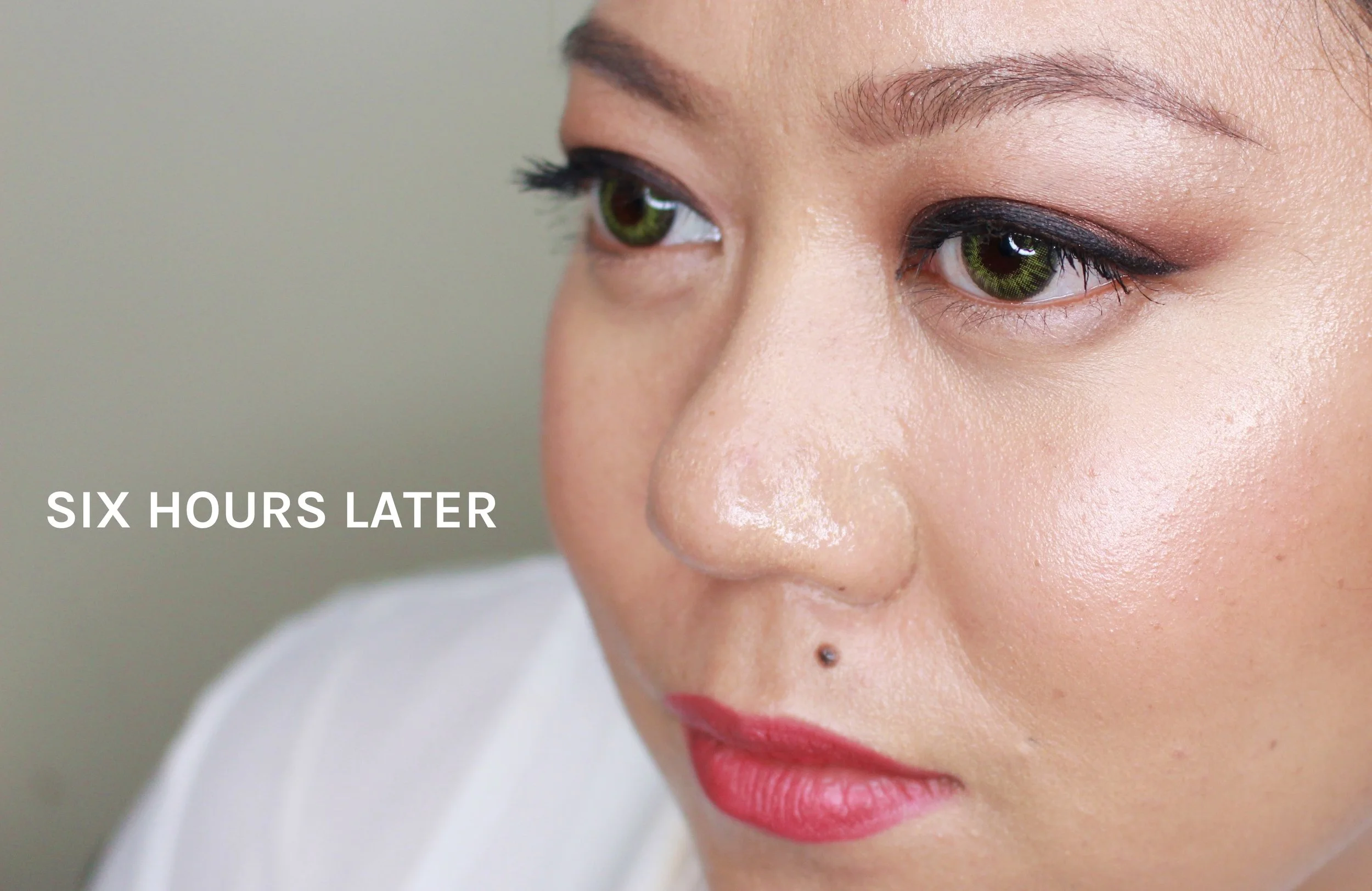 This is with ZERO retouch. Notice how there's barely any smudging on my eye makeup; the lipstick is still there and so is a hint of the blush. I'm oily though, as the MJ primer is best for dry skin.