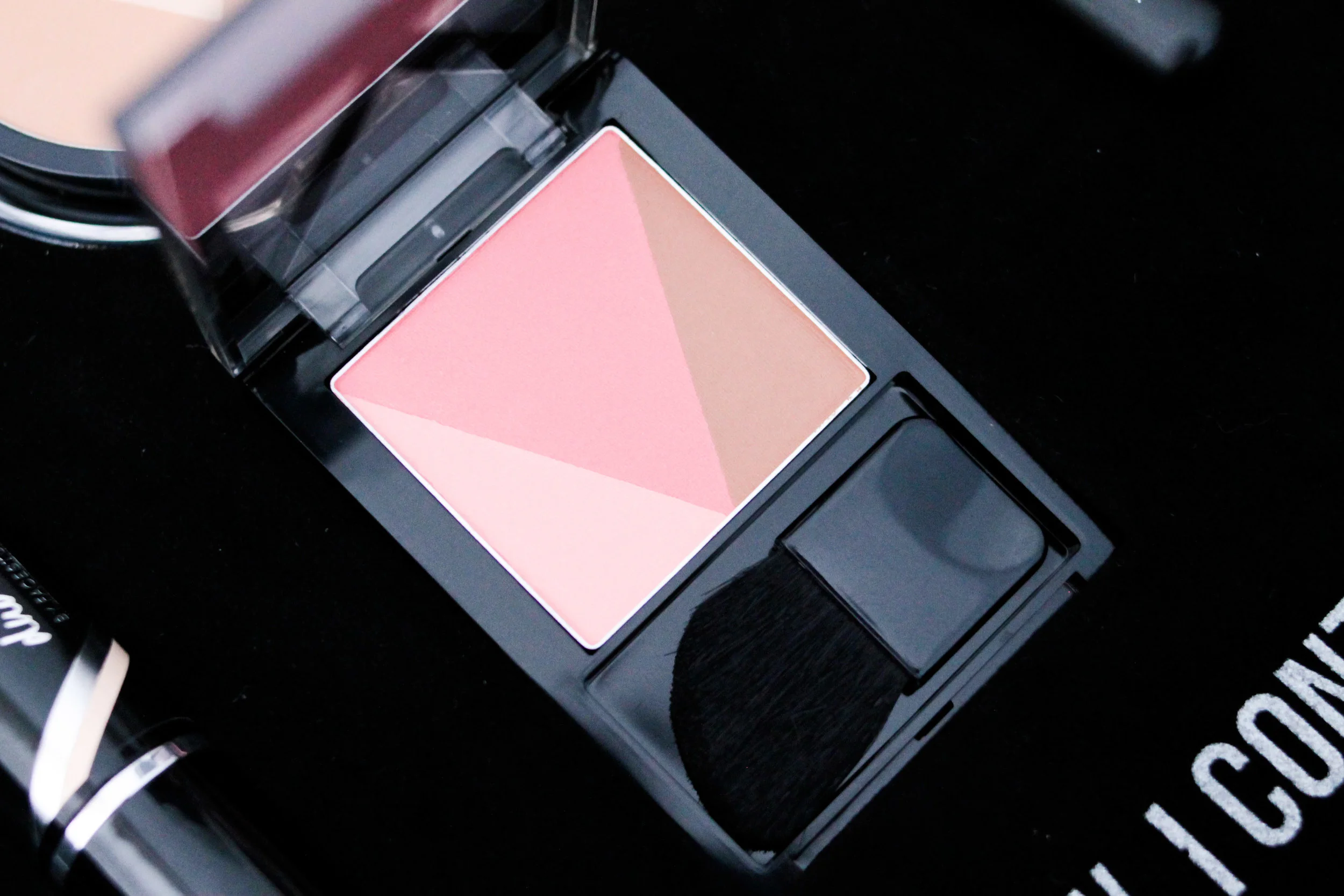 Face Studio V-Face Blush Contour in Wine (P399). I don't normally respect tiny blush/contour palettes because, come on, how are you getting your brush in there? Seriously! It's so frustrating. But if you can be patient with the tiny space for your brush, I think you'll enjoy Maybelline's version. It's pigmented and the contour shade here is the darkest out of the three products I've reviewed; it also has a taupe tint to it.
