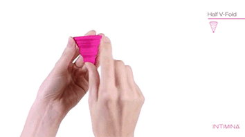 To insert the cup, it is folded so it can be placed into the vagina easily and then spreads out to its normal shape and size. There are several ways you can fold it, depending on your comfort level. Personally, I find that the Punch-down Fold works best for me.