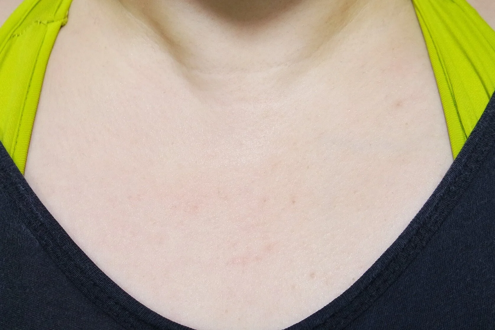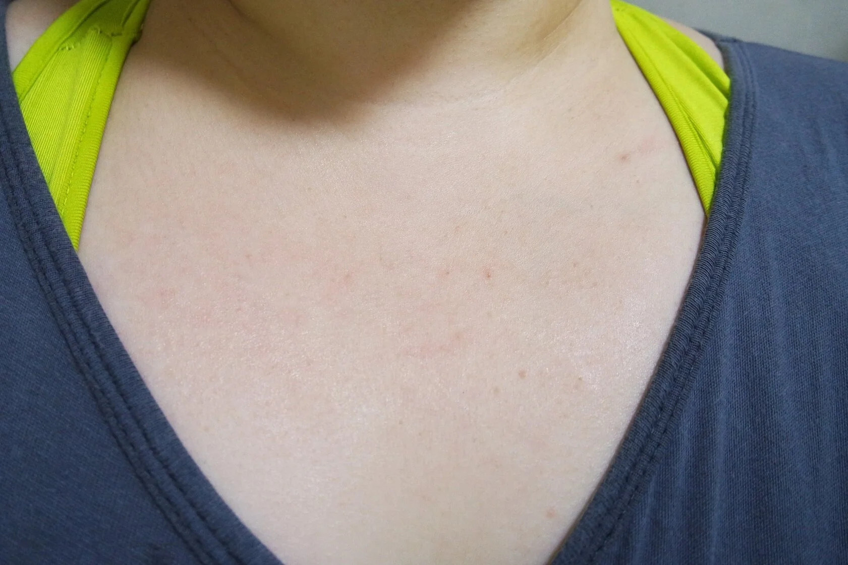 Now, onto the 3B Action Cream. I typically get sweat rashes on my chest, in that area between the neck and breasts. Chalk it up to sweat getting trapped in my workout clothes and irritating my skin. The red bumps usually start to appear right after my workout until the next morning. I applied a pea-sized amount of the Action Cream pre-workout, and I did observe that the sweat rashes did not increase.
