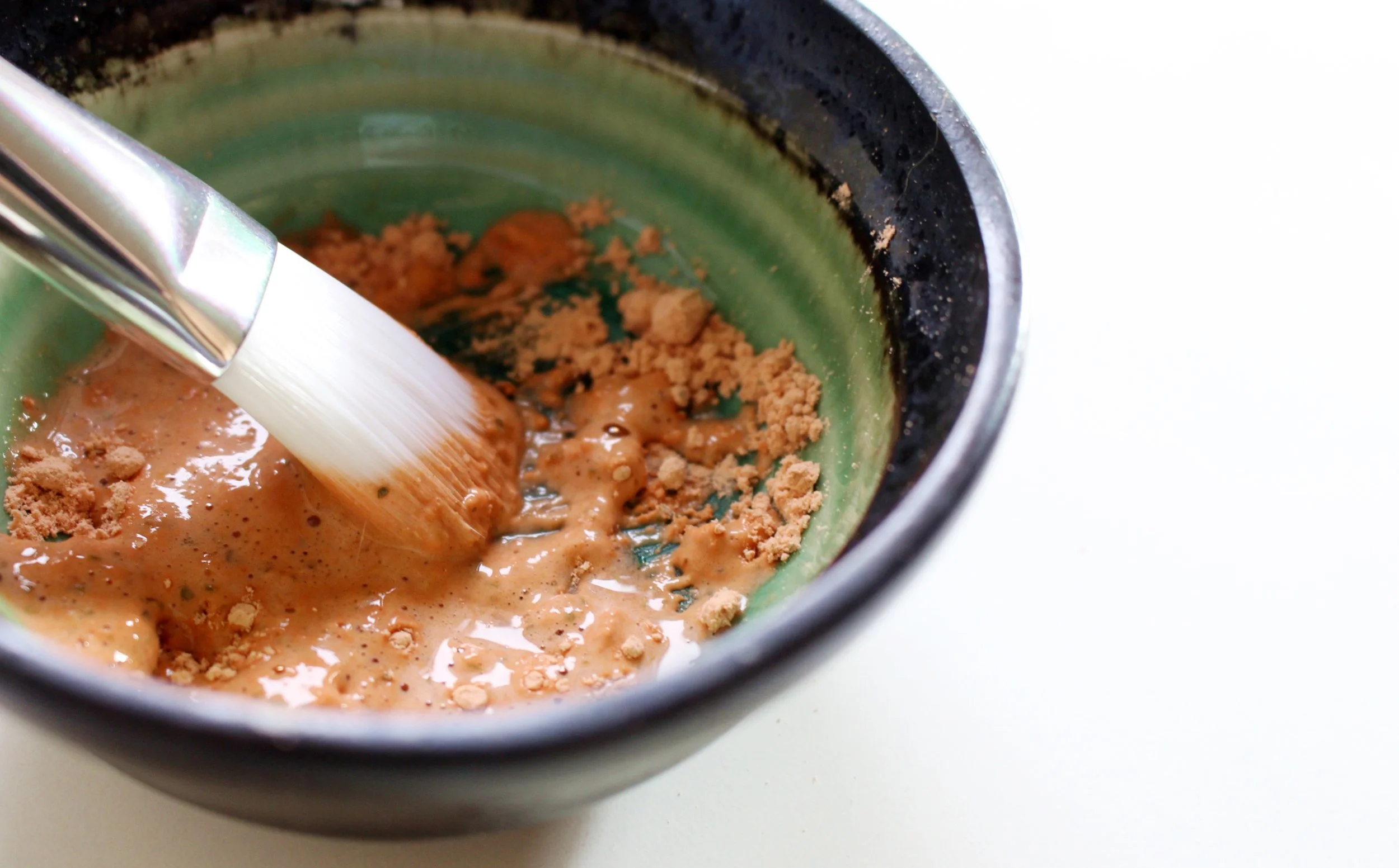 It's easy to use: I just mix a 1:1 ratio of powder and water in a clean saucer then I apply it with either my fingers or a facial brush. It sounds like extra hassle I know, but the whole process is relaxing and actually quite quick to do! The mask sort of bubbles up a bit which is fun to watch and makes it easier to apply. The texture, when mixed properly, is supposed to be fluffy and thick. I leave the mask on for ten minutes and then rinse it off with running water.