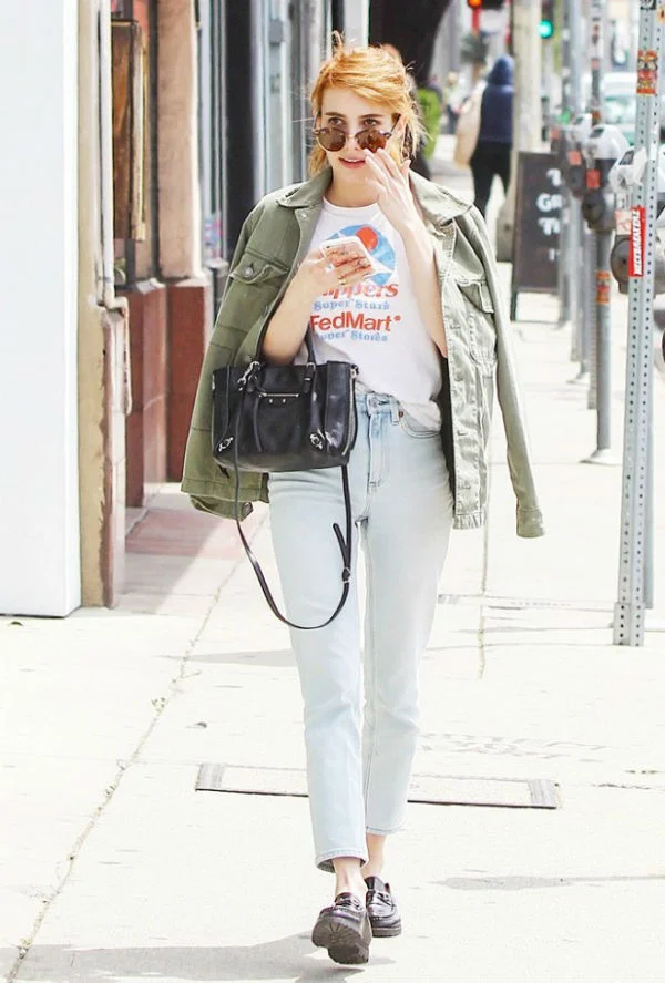 If you're conscious about exposing your belly though, cop Emma Roberts's street style with a graphic tee and jeans. Accessorize with a signature bag to keep your look chic, not grungy.