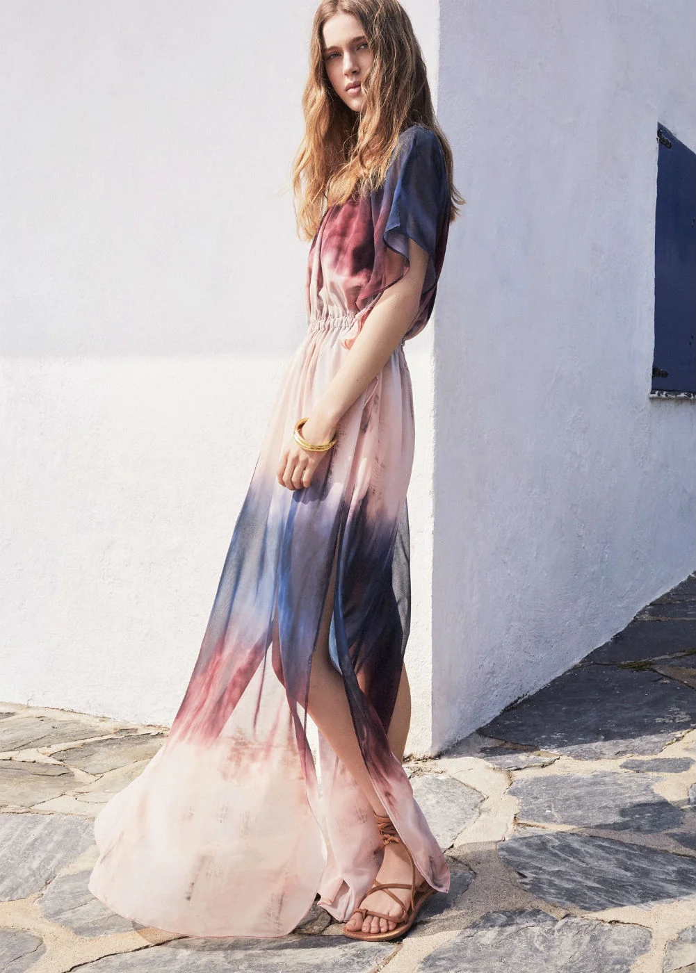 Bikinis aren't the only things to pack for your trip. A loose, flowy dress with pretty pink and blue hues can keep you covered up when you're not in the water. You can even wear it to a fun beach wedding! Pair it with strappy sandals and you just curated another #OOTD for your Instagram.
