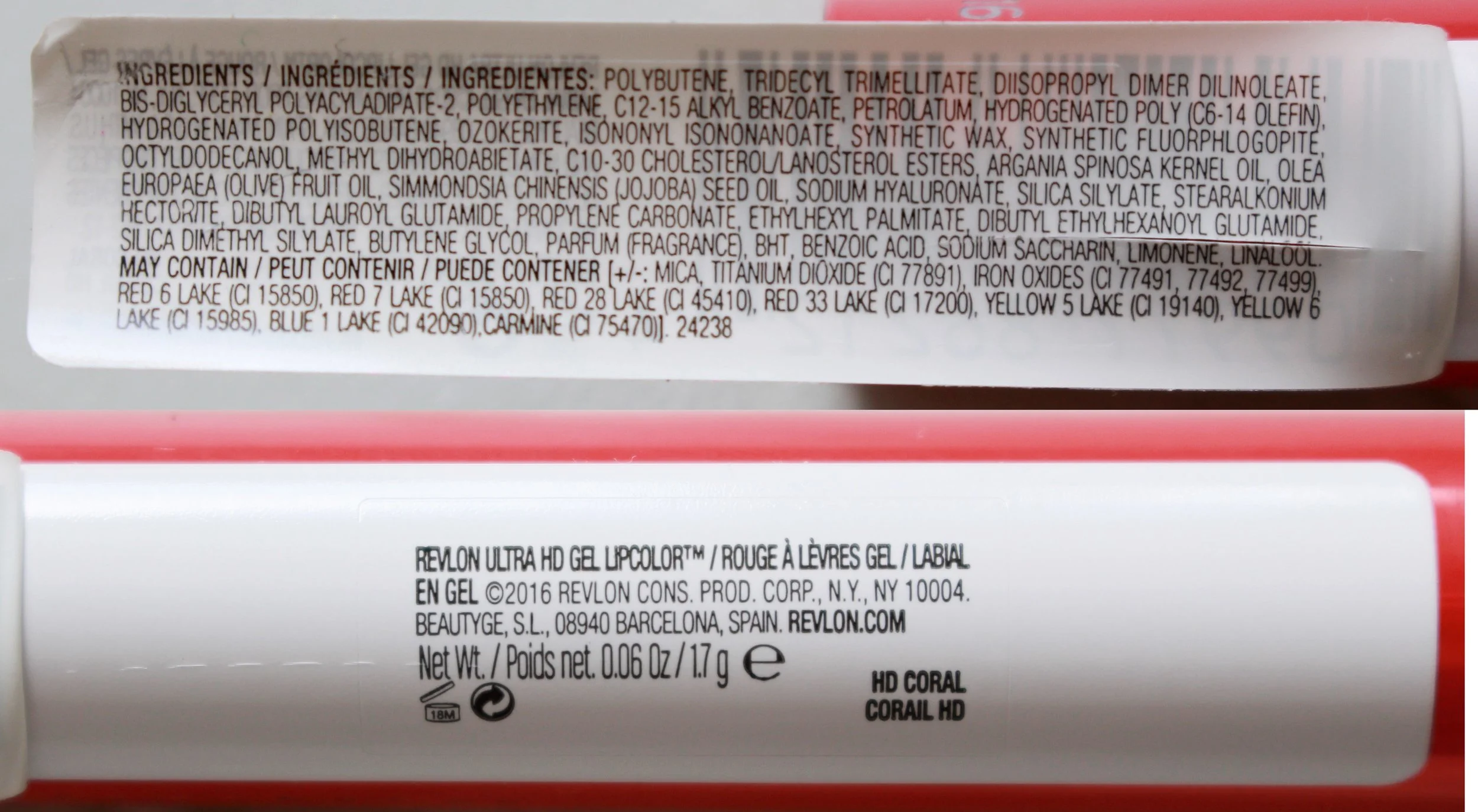 Today let's take a look at Revlon's latest lip line: the Ultra HD Gel Lipcolor (P575). It has an interesting proposition. Revlon describes it as having "vibrant color pigments suspended in a gel base in high-definition, lightweight color" for "silkier, shinier results". If you loved the Revlon Colorburst Lip Butter released five years ago and wished they would come back, well, the new Gel Lipcolor is the improved version of it! It's like the the Lip Butter and the liquid HD Lipcolors had a love child, because you get the crazy pigmentation from the HD line in a luscious, moisturizing formula.