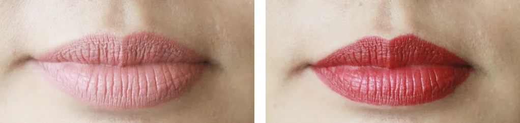 Upon application, they have a slight minty tingle to them. It doesn't bother me it but it’s something to keep in mind, particularly for those with sensitive lips. Staying power is four to five hours, which is pretty decent considering the pocket-friendly price tag. Just make sure to blot off the excess to prevent this from moving around!