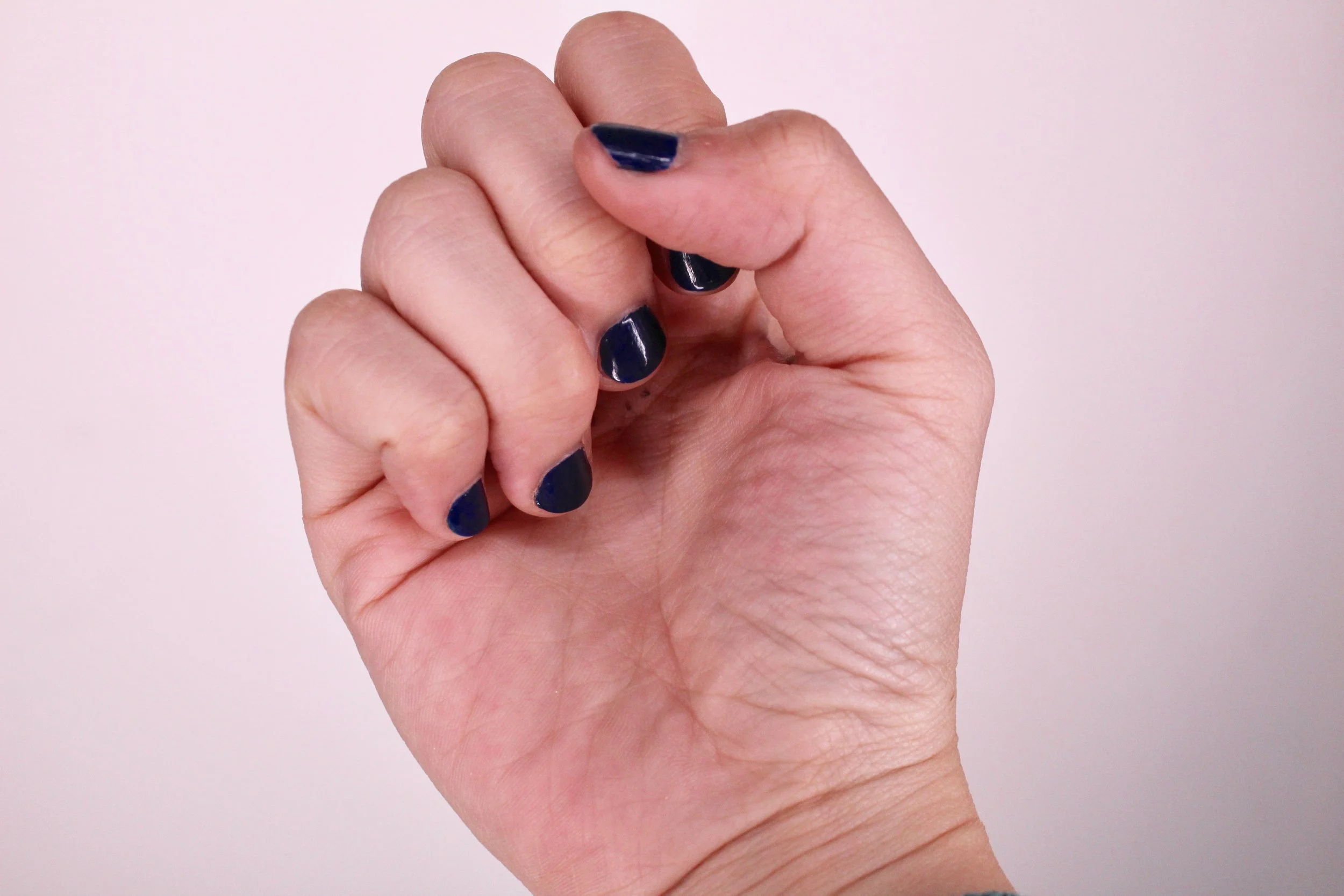The Solique x Agoo capsule collaboration has only three shades, but what the collection lacks in range it makes up for in impact! Smitten is a rich magenta-pink that dances on the edge between edgy and classic. Cloud is this lilac-gray with a touch of mauve: a color I’d honestly never seen in a polish before. Finally, my personal favorite, Posse, is a rich hue somewhere between navy and royal blue, which fans of the British TV series Doctor Who might call “TARDIS blue.” As one such fan, I was determined to try this one on in particular, and see if it could pass my wear test.
