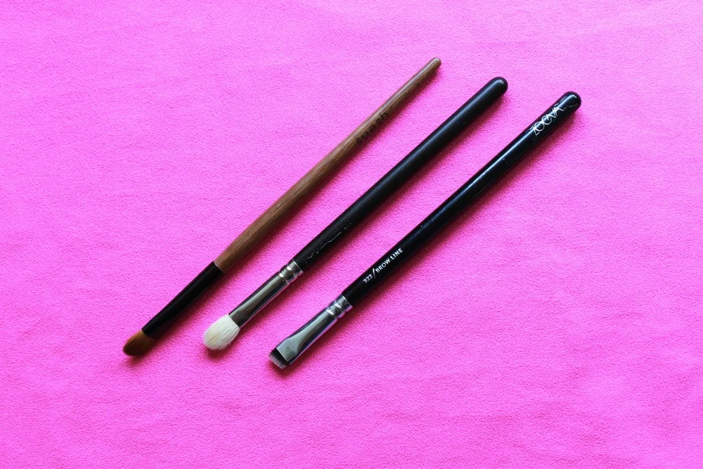 Den: There are two brushes I can't live without: a cheapo Marionnaud No. 38 dual-ended brush for fixing my brows, and a SOFFIA Opulence Perfect Skin Angled Foundation Brush. I'm currently sticking to powder products for my brows so the angled end of the Marionnaud makes application quick and easy. Then I just use the spoolie end to brush it out for a more natural effect! The SOFFIA brush does a lovely job of blending out my face base because I cannot stand streaky foundation application. The densely-packed bristles feel very lush and soft, so I can buff and buff and buff without irritating my skin.