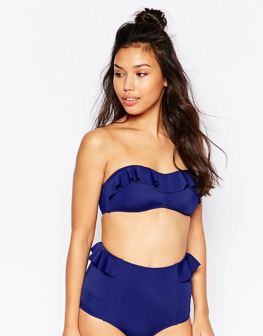 So you’re a little lacking in the curves department. That’s nothing you can’t fix with some strategic cut-outs to give you an hourglass shape. Frills on your bikini top and bottom can also create the appearance of more curves on those areas.