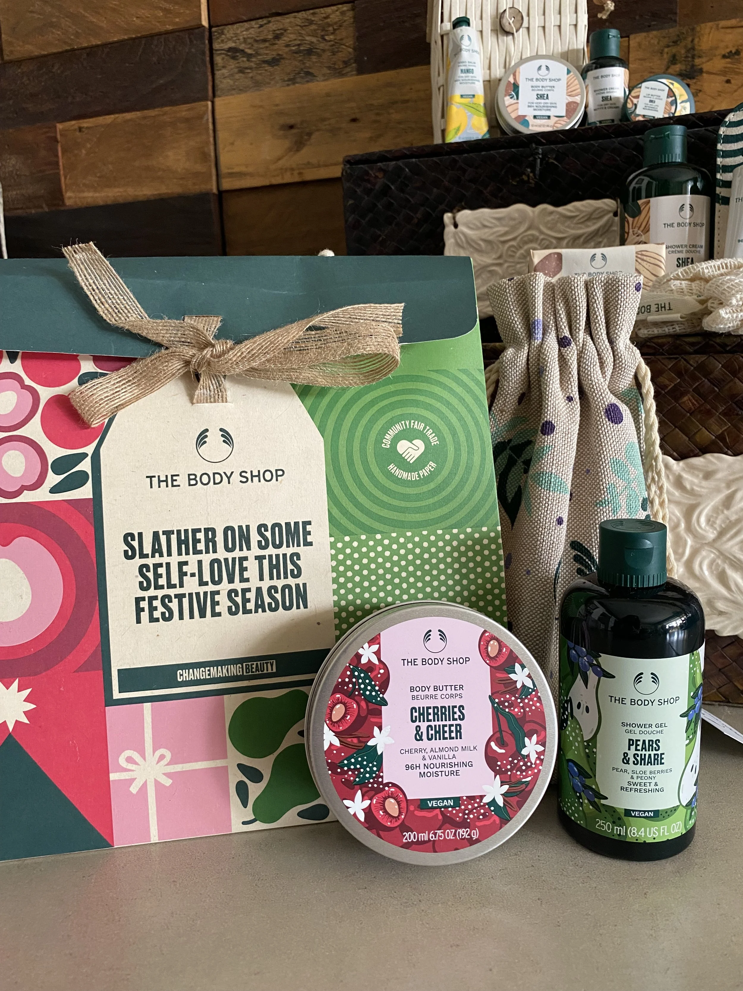 With less than two weeks until Christmas, are you still pondering over your shopping list? Let me share my recent experience with The Body Shop's Holiday Collection, which might just be the solution to your gifting needs. This year, they've really stepped up their game with two special seasonal scents: the returning favorite, Pears & Share, and the new, delectable Cherries & Cheer. I was lucky enough to get my hands on these fragrances, along with two of their beautifully packaged gift sets. Each set is more than just a gift; it's a contribution to positive change, supporting communities globally through The Body Shop’s Community Fair Trade partnerships. Join me as we unwrap these treasures and explore what makes them the perfect gifts for this holiday season!