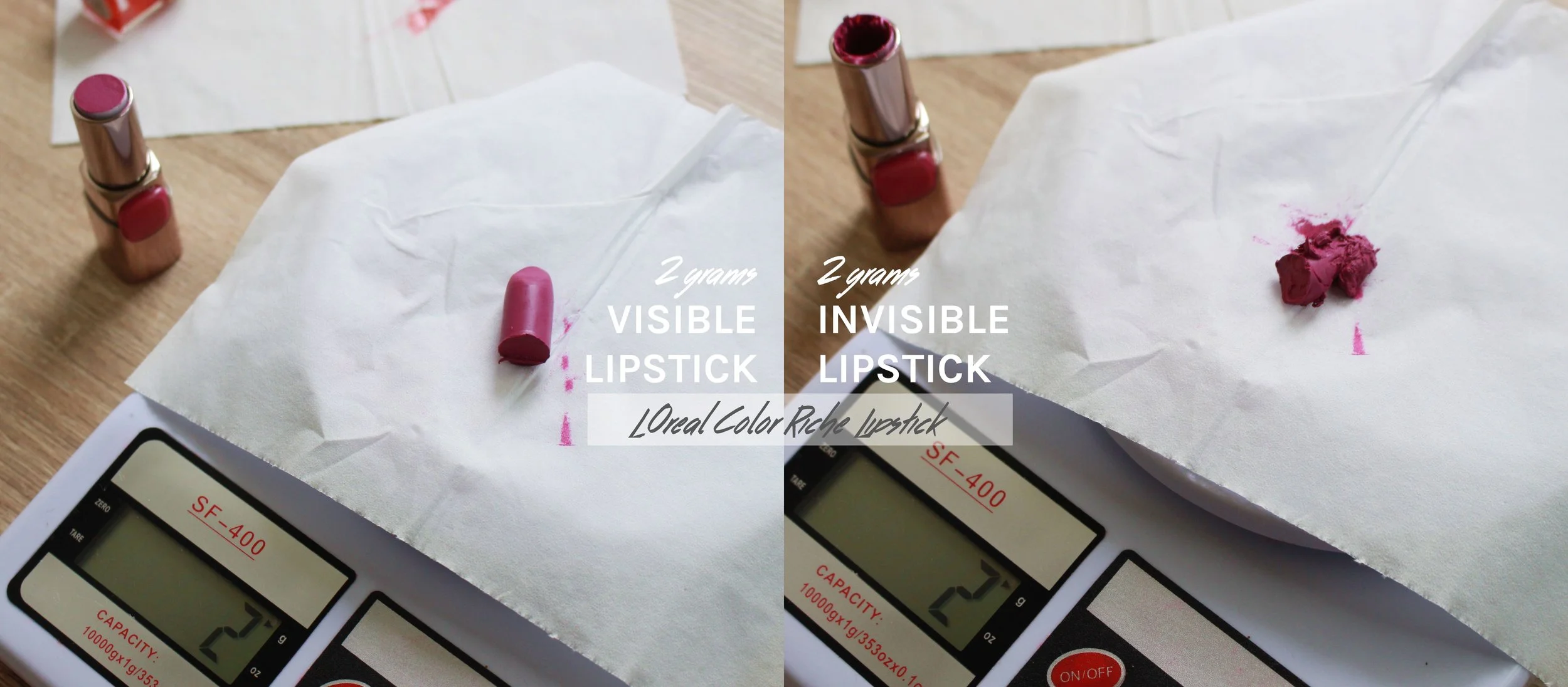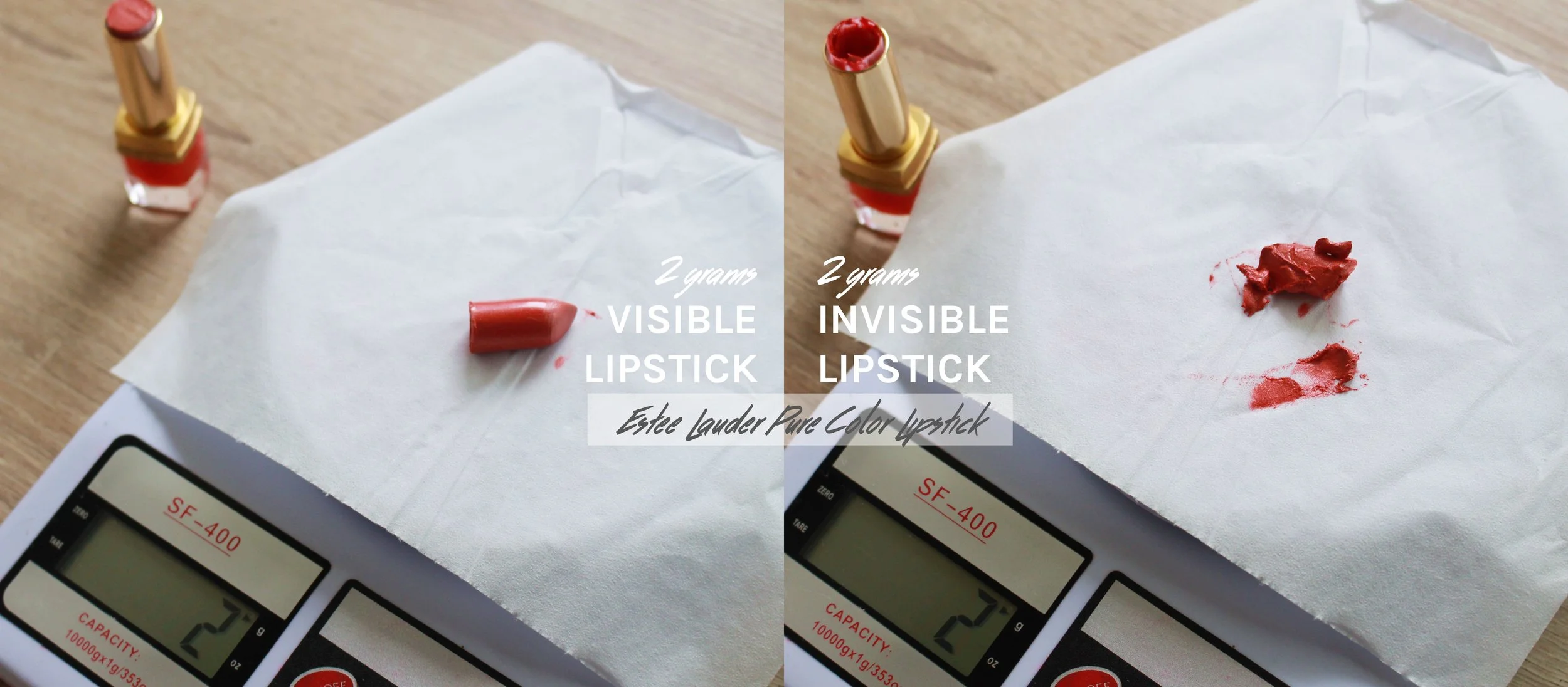 Have you ever finished a lipstick bullet down to the very bottom? If so, you've probably dug in with a lip brush to get as much as you can. If you're a thrifty beauty nerd, then you would've scraped out what you can with a small knife. But how much, exactly, is left over when you're done with a lipstick tube? How does this amount vary compared to the stated number of grams on the label, what you see with your eyes, and what's down below the bullet?