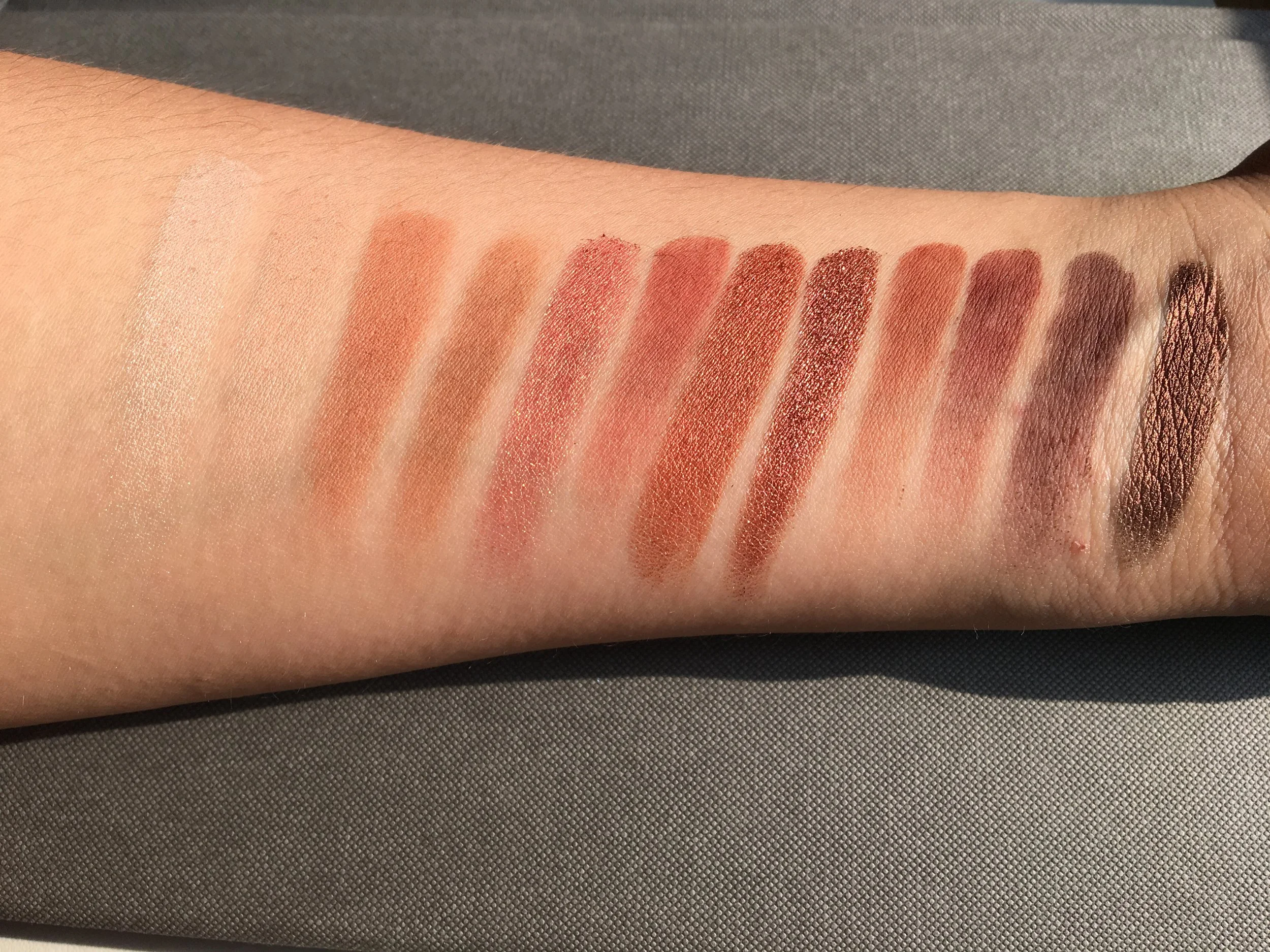 Dirty Talk is probably my favorite shade from the palette even though it is not "everyday appropriate”. It is a warm red copper with an almost metallic finish. It applies smoothly and opaquely both in swatches and on the eyes. It’s quite a unique color which I looooooove!