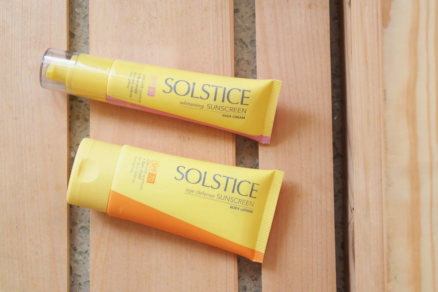Solstice Whitening Sunscreen Face Cream (P269) and Solstice Age Defense Sunscreen Body Lotion (P269)