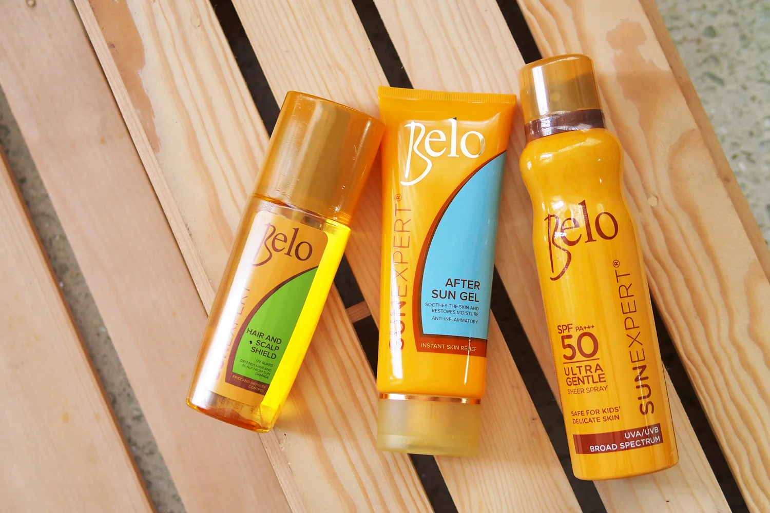 Belo Sun Expert Hair and Scalp Shield (P349), Belo Sun Expert After Sun Gel (P259), and Belo Sun Expert Ultra Gentle Sheer Spray SPF50 (P539.75)