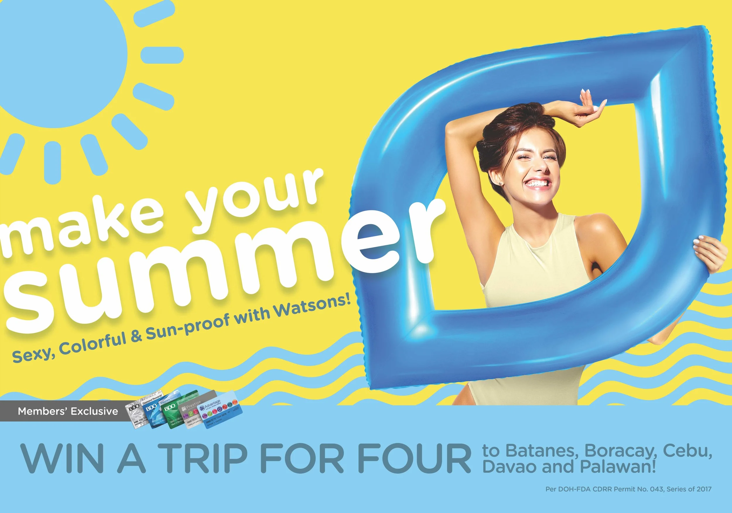 To make shopping even more exciting, Watsons is giving away summer vacations for 4 to these amazing destinations – Batanes, Boracay, Cebu, Davao, and Palawan! You just need to present your SM Advantage Card when purchasing the participating products and you’ll get one e-raffle entry for every P500 single-receipt purchase. Promo runs from February 23 to April 26, 2017.
