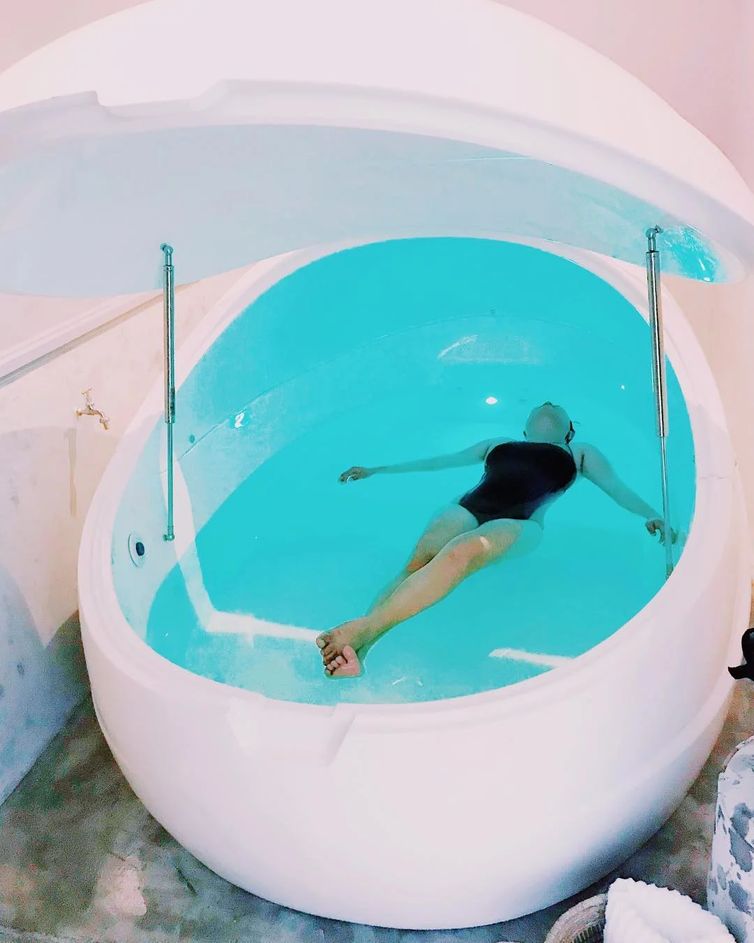 I didn’t have many thoughts after because I had fallen asleep before I knew it. I woke up not knowing where my body ended and the water began. This must be how it feels like to be suspended in jelly! Moving my hands to my stomach, I was beginning to feel salt solidifying on my skin. I kept still for another few minutes, closed the tank lid and my eyes, and floated around in silence. And then the music started to play and a voice recording told me that my session was over.
