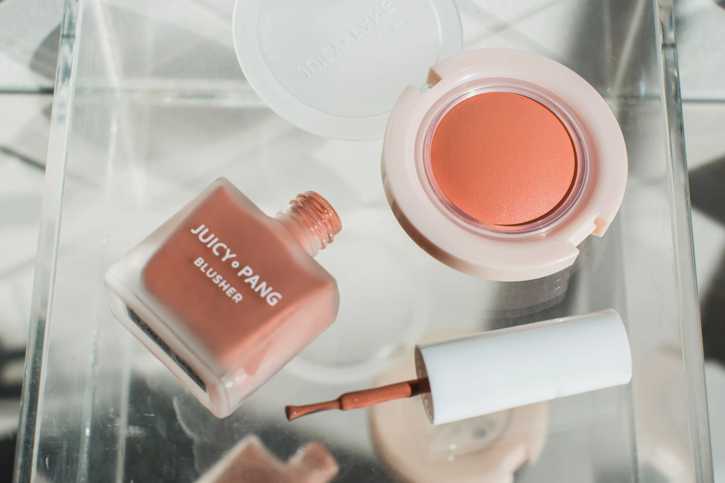 A’pieu is actually best known for their Juicy Pang makeup line. “Pang” actually means “juicy” in Korean, so that should give you an idea of what finish to expect from these products! I was immediately drawn to the Juicy Pang Water Blusher (P355) which actually looks a lot like nail polish! I love the non-sticky, lightweight texture that allows you to gradually build up pigment. The effect is a soft, natural glow that can be blended out instead of a bright stain. Although the finish feels powdery, there are subtle flecks of shimmer to keep the color from looking flat.