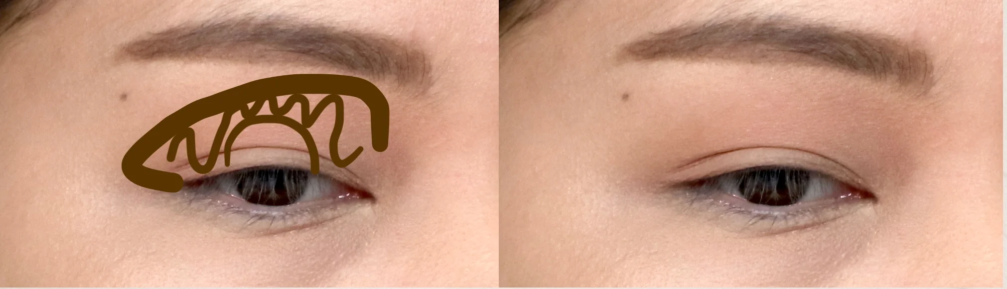 I don’t set the transition shade in a traditional concave shape over the mobile lid. Because my eyes aren’t deep set and my nose bridge isn’t high, I prefer to pull the shading towards the inner part of my brows. This helps create the illusion that my eye sockets are deeper and my nose bridge, higher.